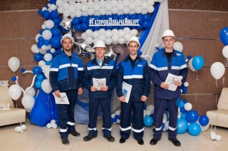 На входе в конференц-зал работников встречали активисты Совета молодых ученых и специалистов предприятия. Под воодушевляющие лозунги они вручали сотрудникам праздничный номер газеты «Пульс Ямбурга» и приглашали всех сфотографироваться на фоне пресс-волла с запоминающимися хэштегами.